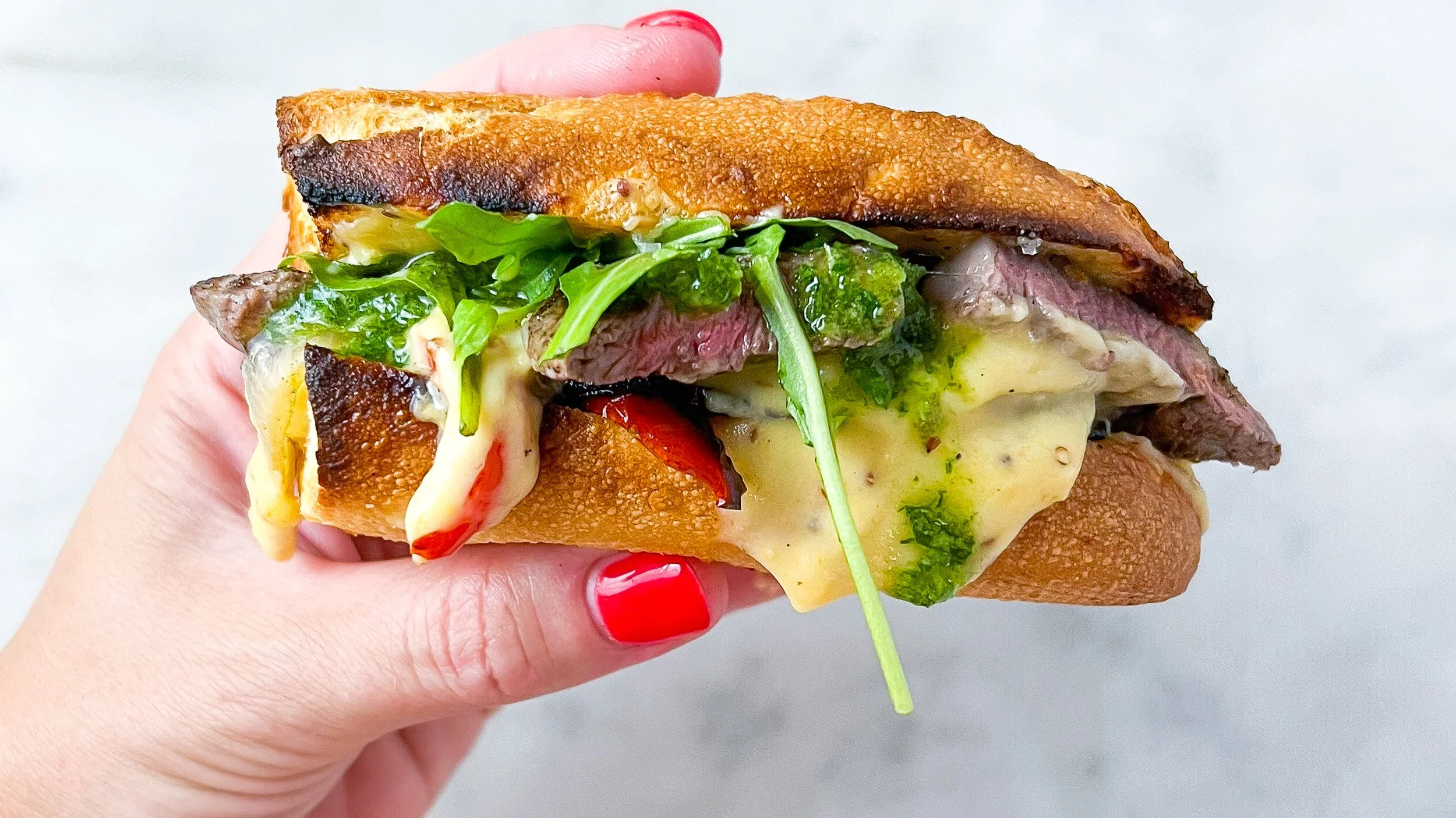 How you eat a steak sambo is up to you, but mustard beshy is in